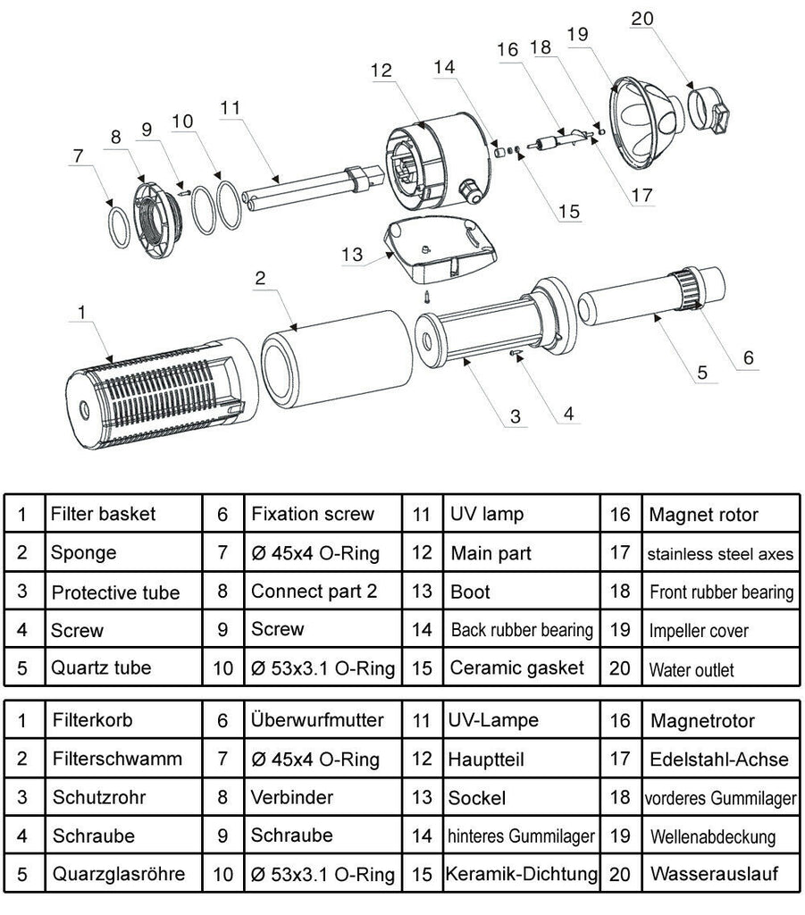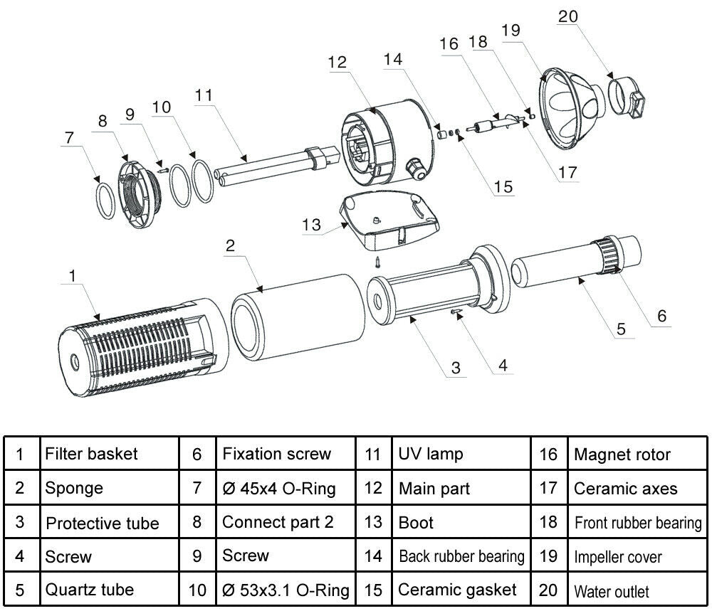 Nous vous recommandons à chaque début de saison, dès que la température de l'eau d'aquarium augmente, de changer la lampe de l'unité UVC et de nettoyer le verre quartz de la lampe UV.