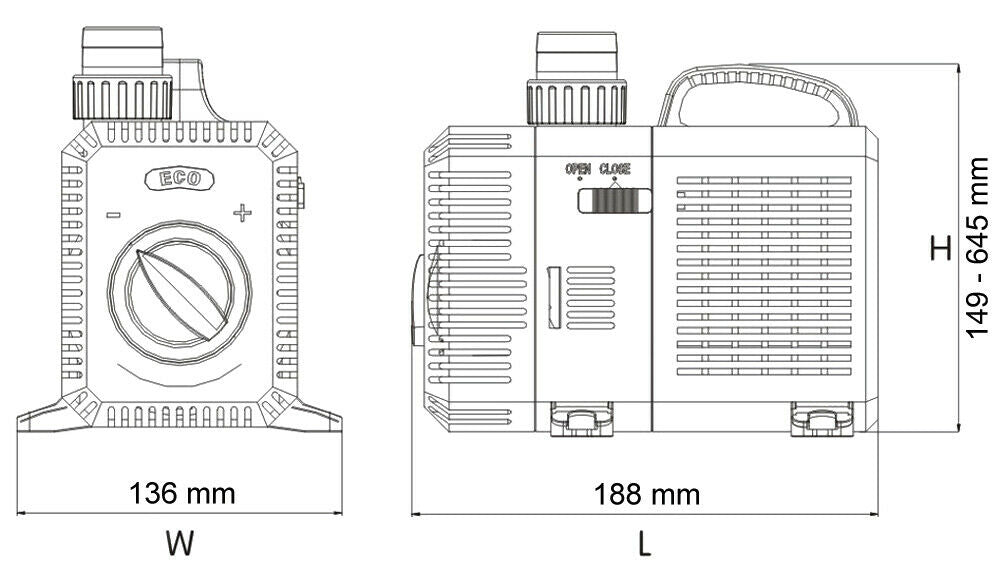Ceci est aussi typique pour la fabrication de la marque SunSun: un fonctionnement en continu de 0 à 100%, tout est possible de la pure pompe filtre à la pompe de fontaine avec une faible consommation d’énergie.