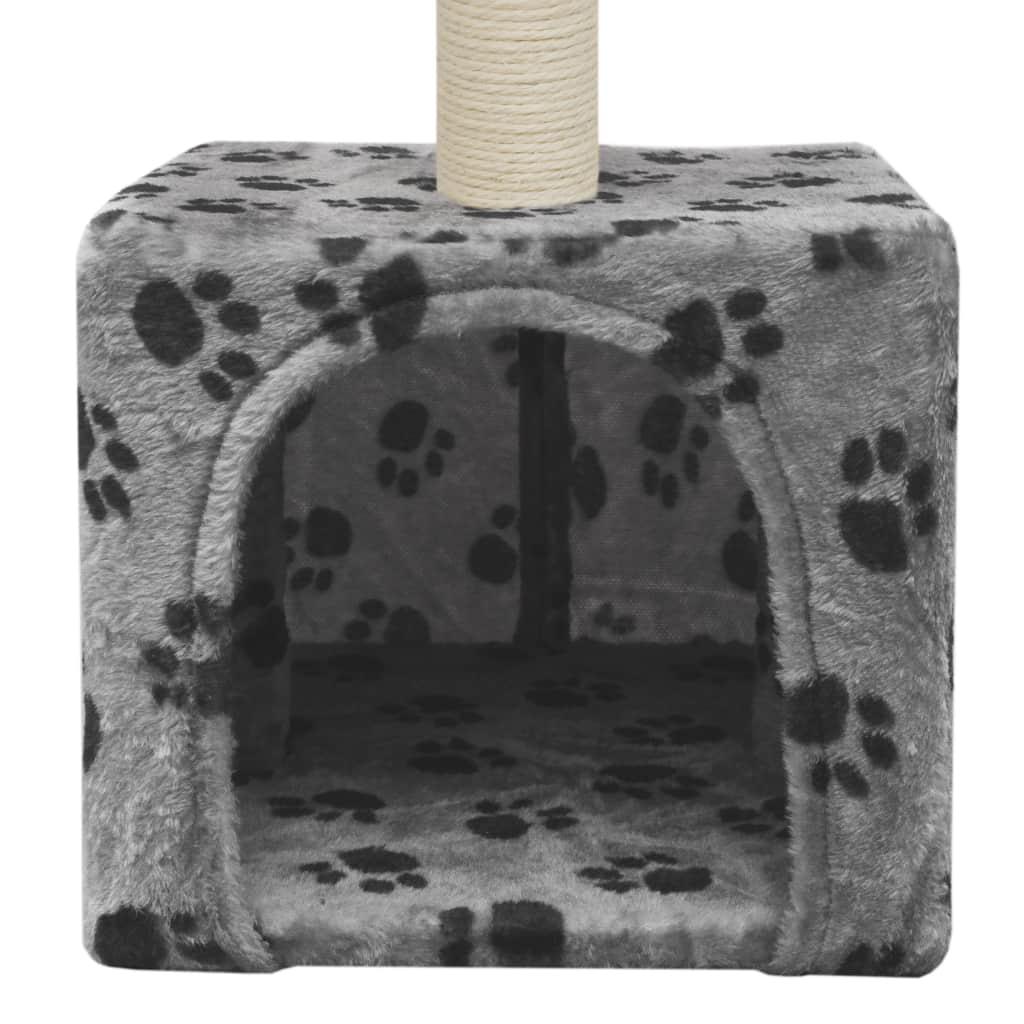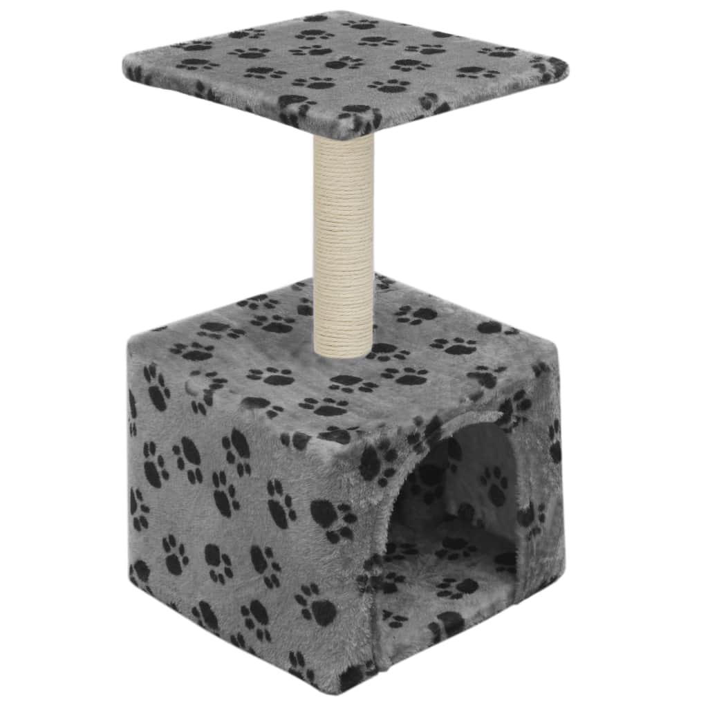 Arbre à chat griffoir grattoir niche jouet animaux peluché en sisal 55 cm gris motif de pattes 3702081