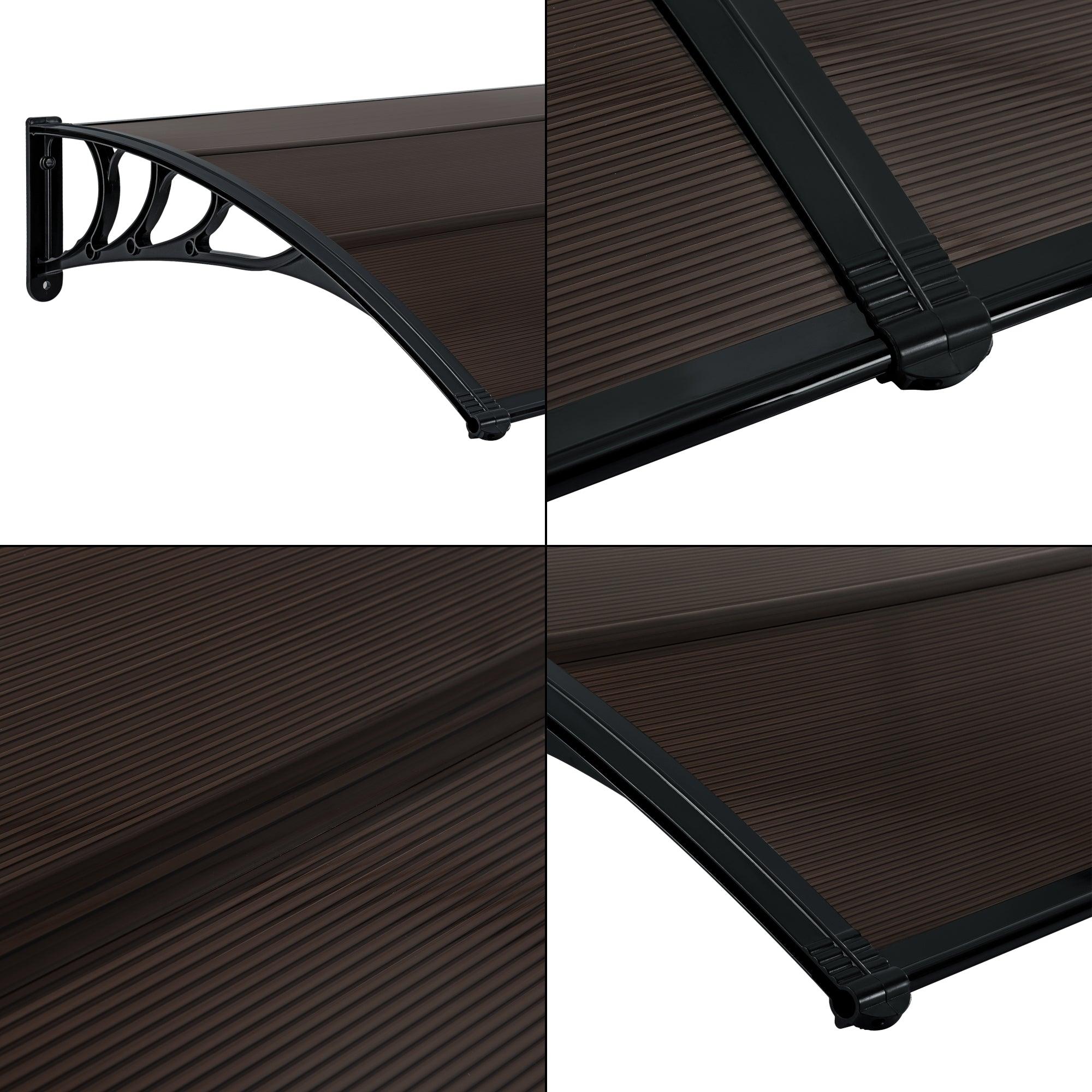 Auvent de porte marquise résistante aux intempéries ABS polycarbonate aluminium 240 x 100 cm noir marron 03_0004672