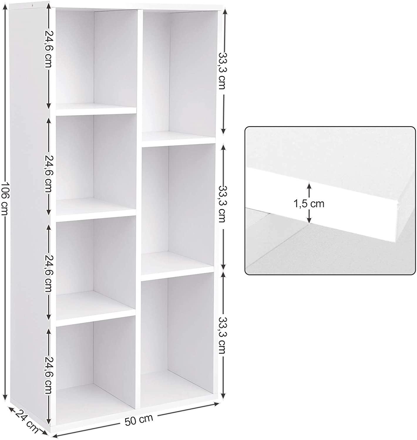 Bibliothèque à 7 compartiments étagère à 7 cubes ouverts rangement pour salon et bureau 50 x 24 x 106 cm style moderne blanc 12_0000497
