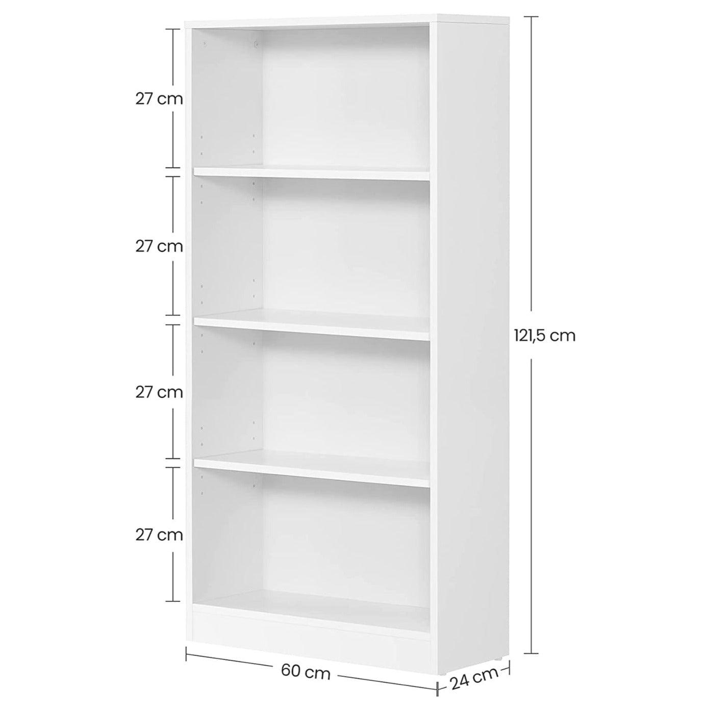Bibliothèque DVD étagère à 4 niveaux meuble de rangement avec étagères réglables en hauteur pour salon chambre bureau 121,5 cm blanc 12_0001462