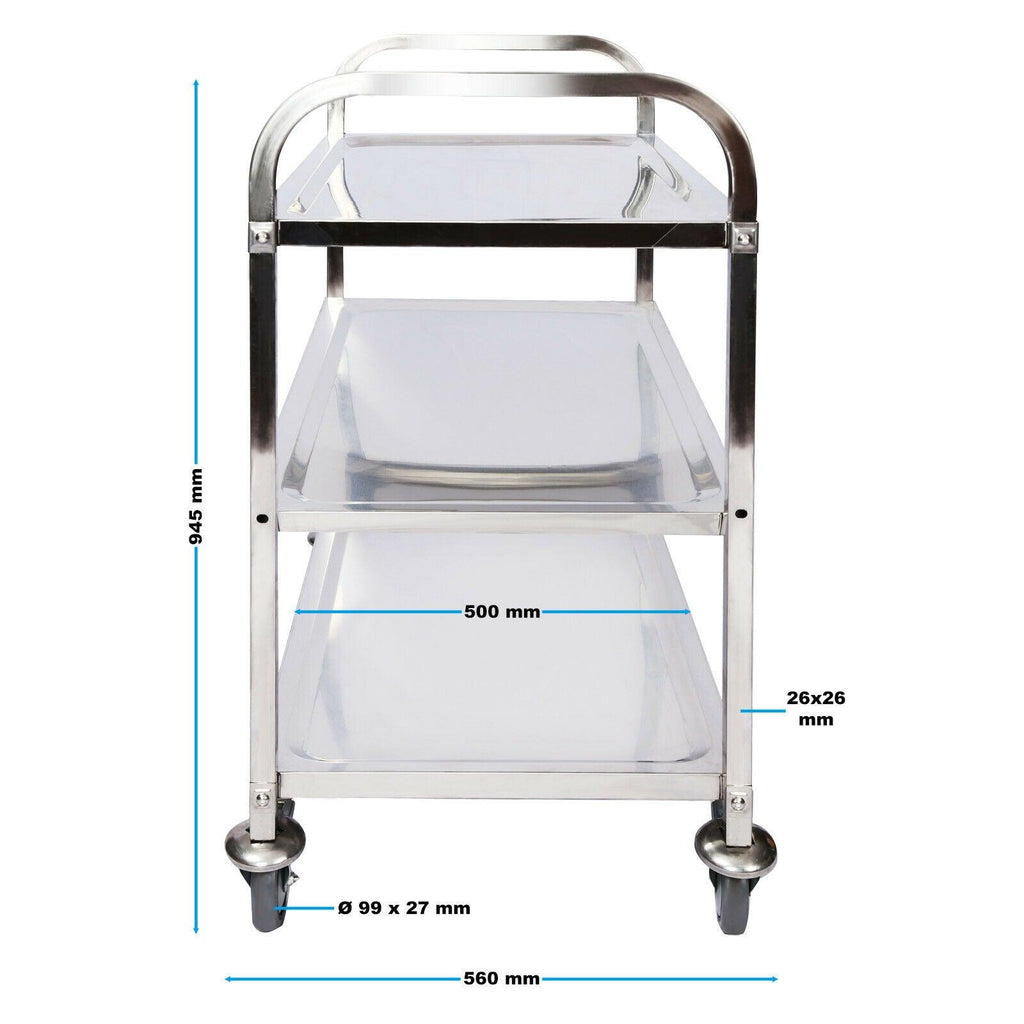 Chariot de service acier affiné 3 étagères jusqu’à 150 kg desserte mobile cuisine 16_0002576