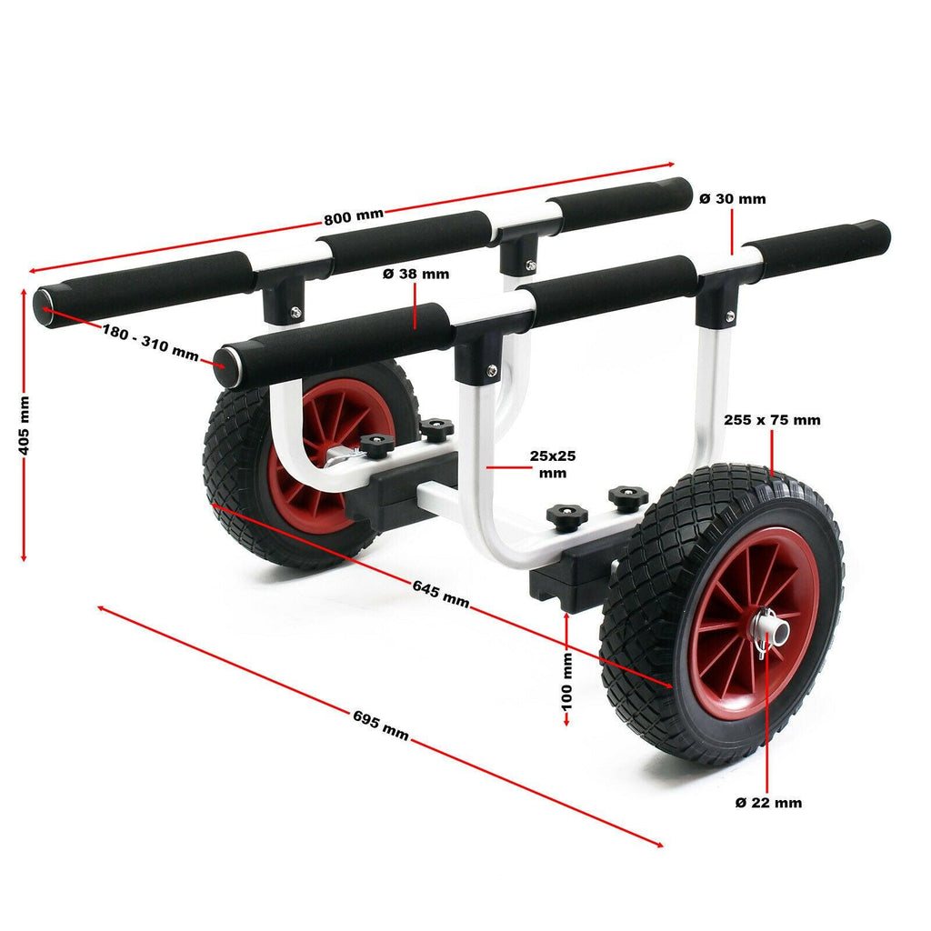Le chariot s'adapte à plusieurs formes de kayaks grâce à la largeur du support qui est réglable.