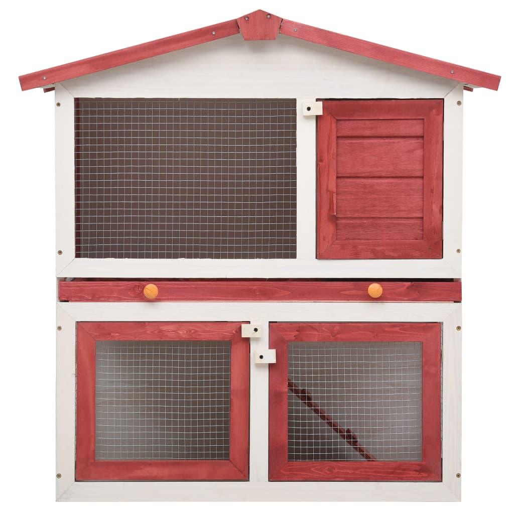 Clapier d'extérieur 94 x 60 x 98 cm 3 portes rouge bois 02_0000591