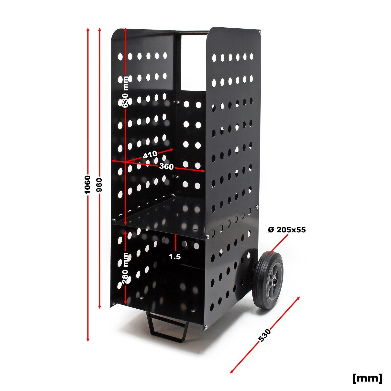 Chariot porte-bûches XL 106 cm transport de bois de chauffage cheminée diable panier noir 16_0002941