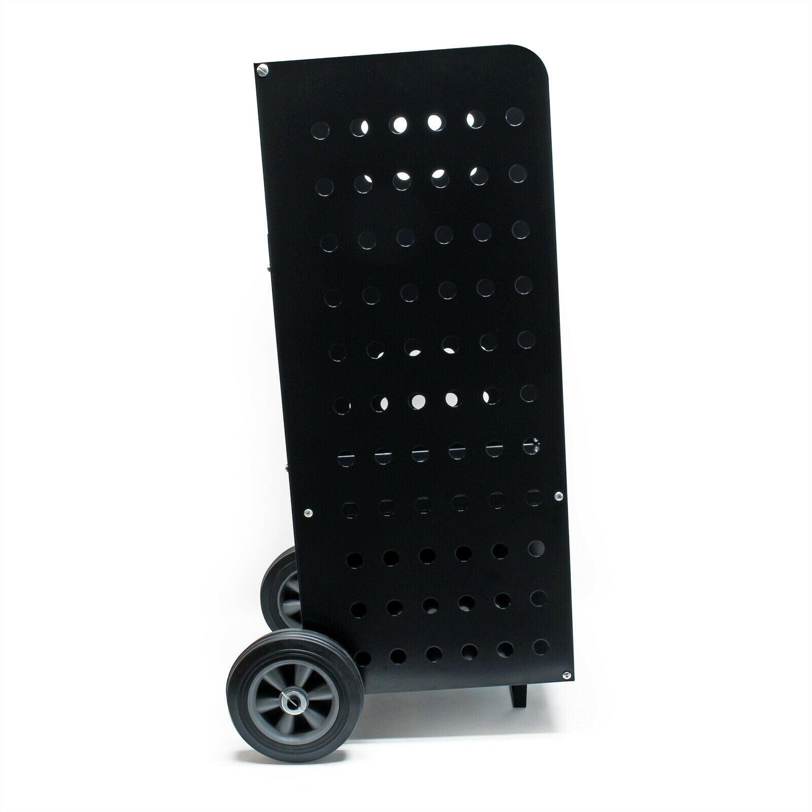 L‘esthétique de cette construction en tôle perforée confère au chariot stabilité et durabilité.