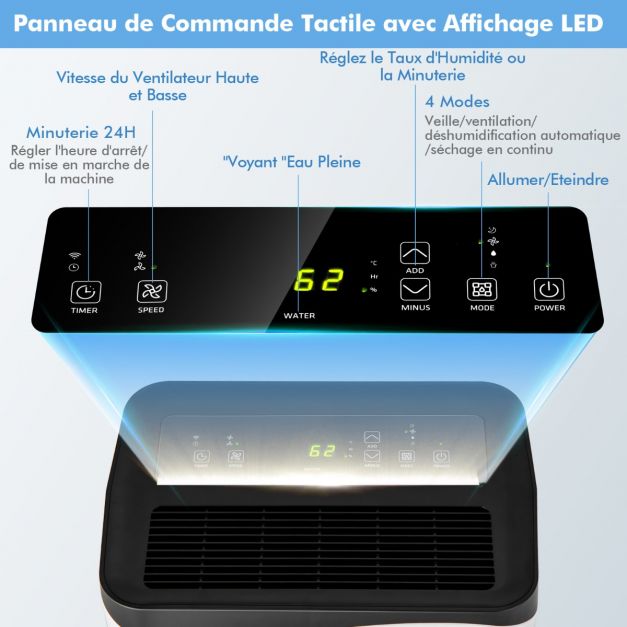 Grande capacité de déshumidification jusqu'à 50 L/jour