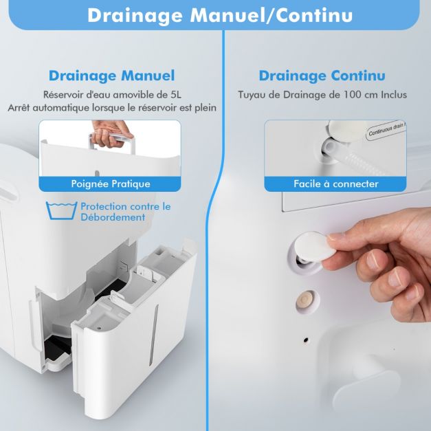 Fournit 2 voies de drainage, y compris manuelle et continue