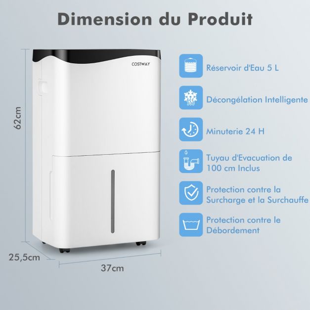 Capacité de déshumidification : 50 L/jour