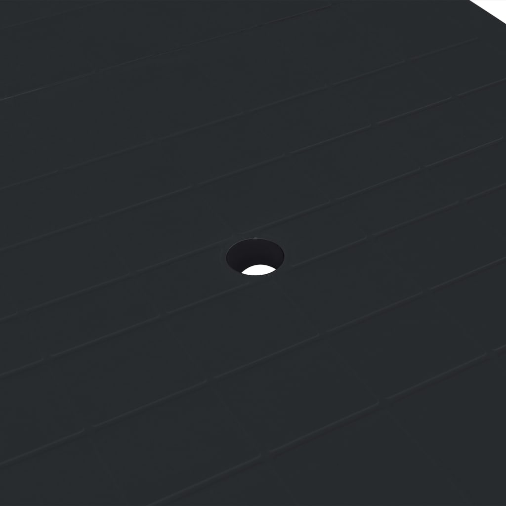 La table de jardin a un trou pour parasol afin que vous puissiez l'utiliser avec un parasol et rester au frais à l'ombre.