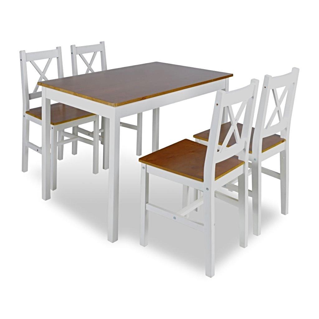 Ensemble table salle à manger 108 cm salon en bois de pin + 4 chaises blanc et marron 0902032