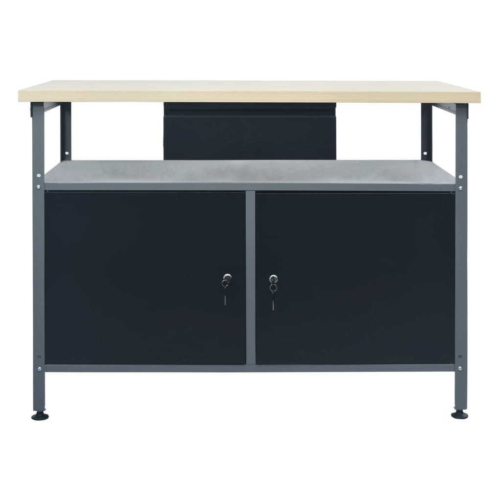 Etabli travaux de réparation table de travail poste de travail garage atelier espace de stockage robuste 120x60x85 cm acier noir 02_0003677