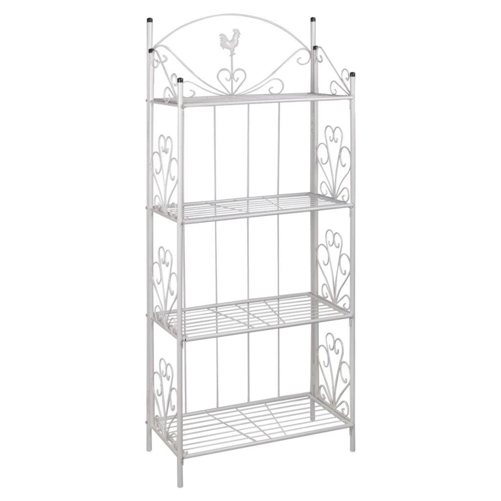 Etagère 4 niveaux acier blanc intérieur ou extérieur pour plantes fleurs 2702002