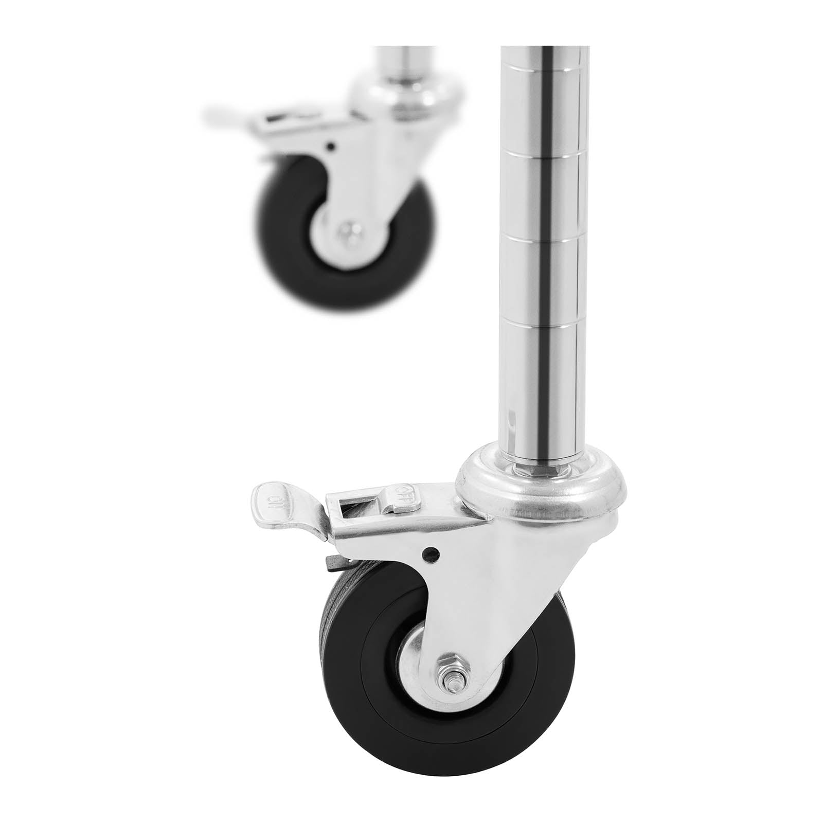 Elle est dotée de roulettes en caoutchouc de 3 pouces pour pouvoir la transporter facilement là où vous avez besoin des objets qu'elle contient, que ce soit dans la cuisine d'un hôtel ou restaurant, au bureau, à la maison ou dans un magasin.