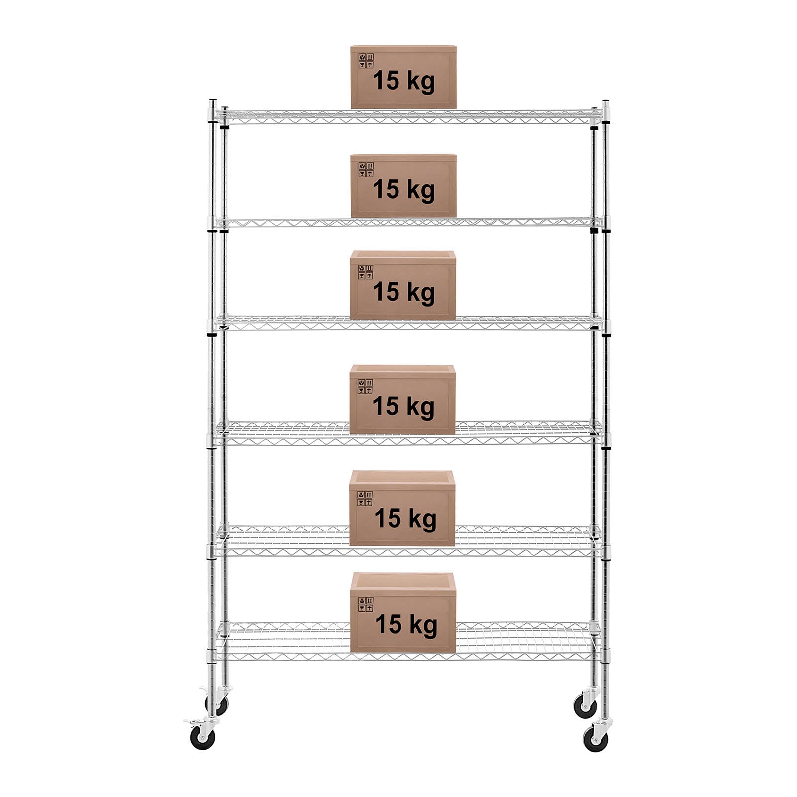 Comme chacun de ses tablettes supporte un maximum de 15 kg, elle présente une capacité de charge totale de 90 kg.