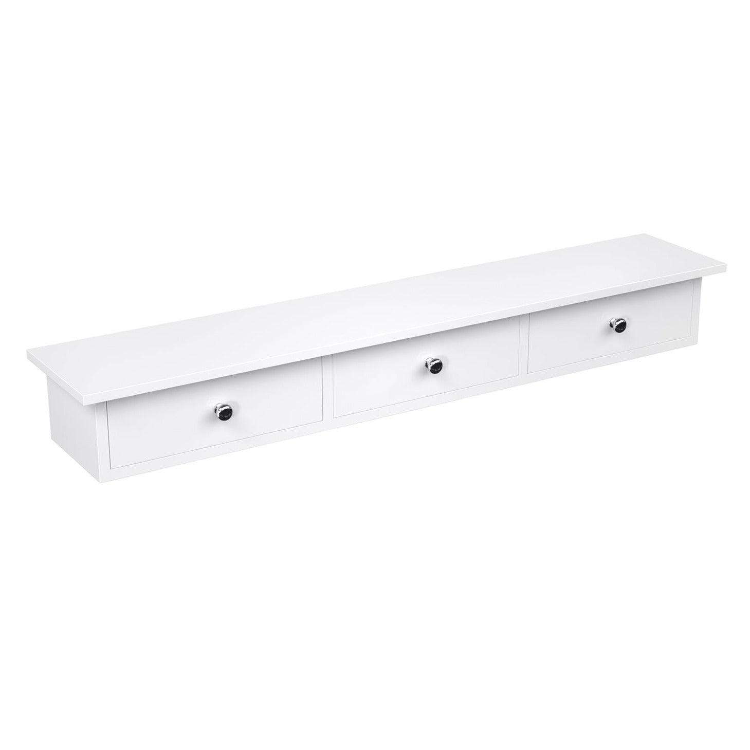 Étagère murale 3 tiroirs flottante avec meuble de rangement mur 80 x 15 x 10 cm pour couloir salon chambre à coucher cuisine peinture haute brillance blanc 12_0002399