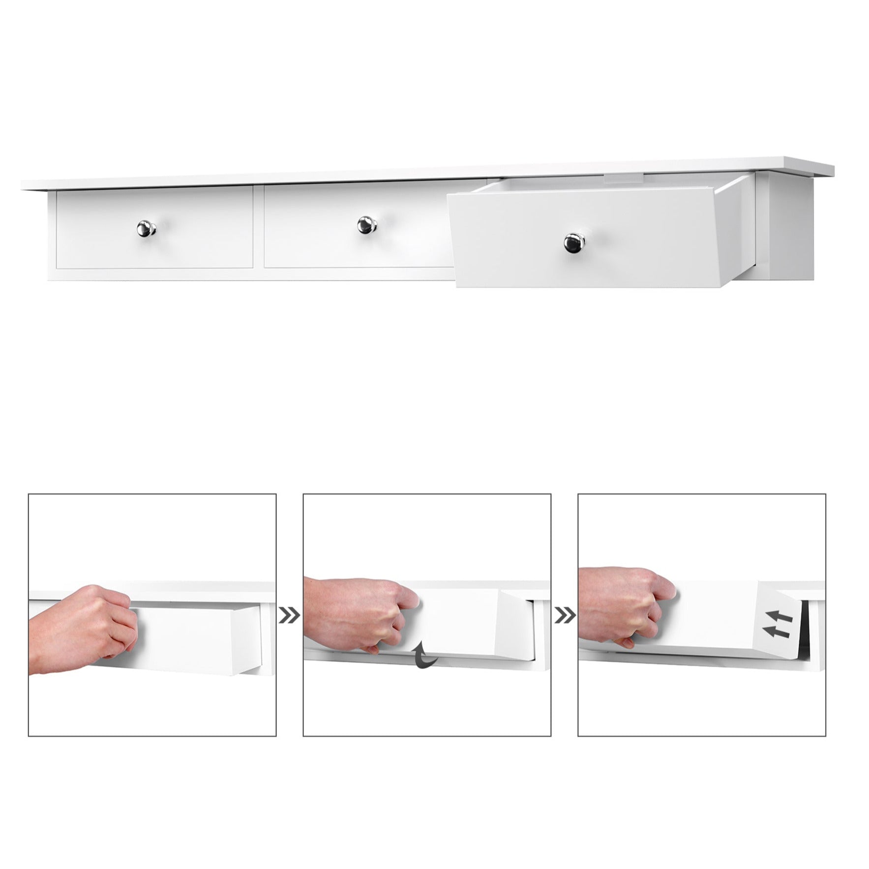 Une étagère murale flottante avec 3 tiroirs pour ajouter un espace de rangement supplémentaire dans votre maison