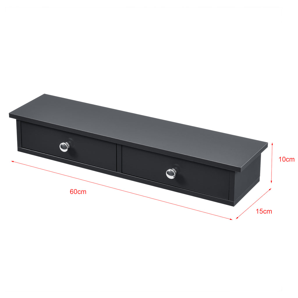 Étagère murale stylée avec 2 tiroirs meuble de rangement MDF 60 cm gris foncé 03_0005193