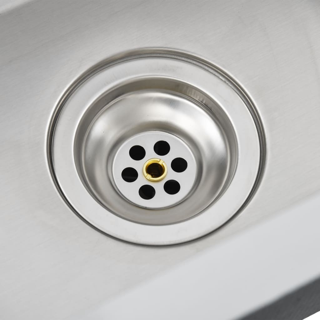 Évier de cuisine fait à la main avec crépine 44 x 29 cm acier inoxydable 02_0002361