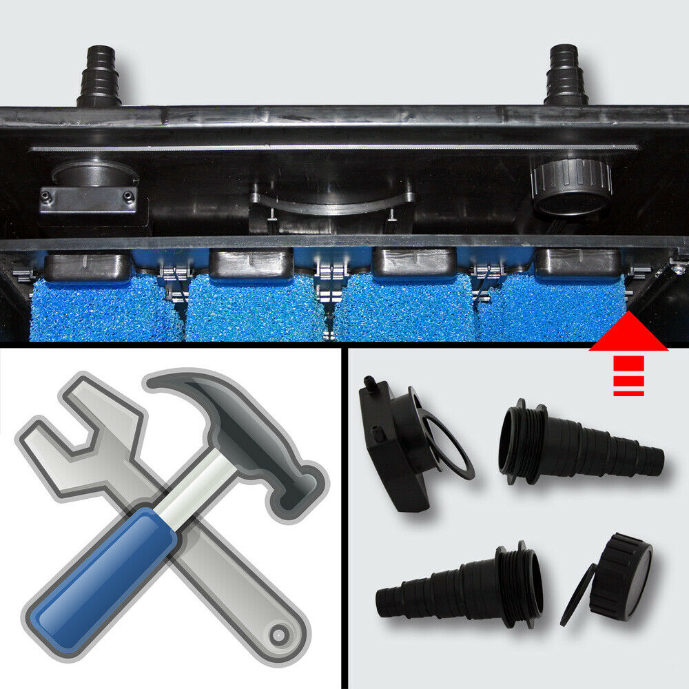 Avec un volume de filtration d'env. 60 litres, le filtre de bassin assure le filtrage et nettoyage de façon fiable et avec un minimum d'efforts, des petits bassins de Koï.