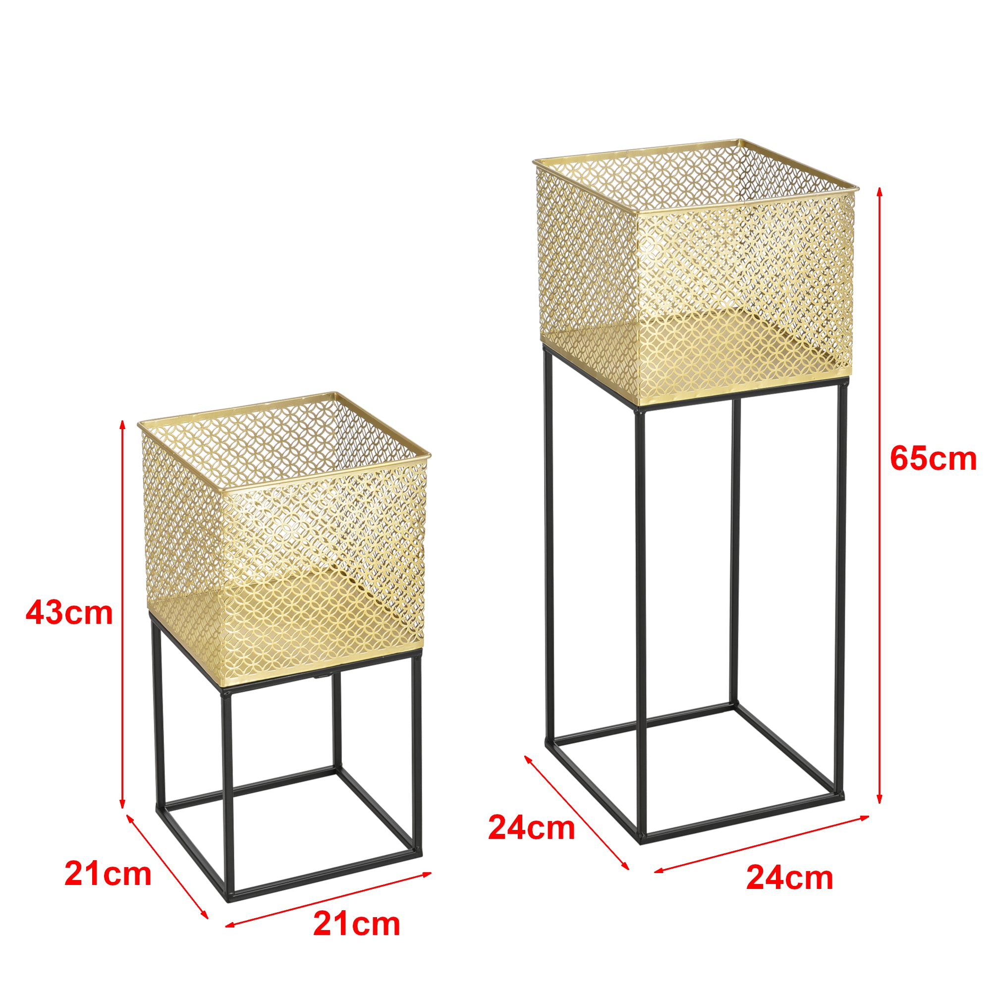 Lot de 2 supports de plantes cache-pot de fleur bacs vases en métal noir doré 03_0005774