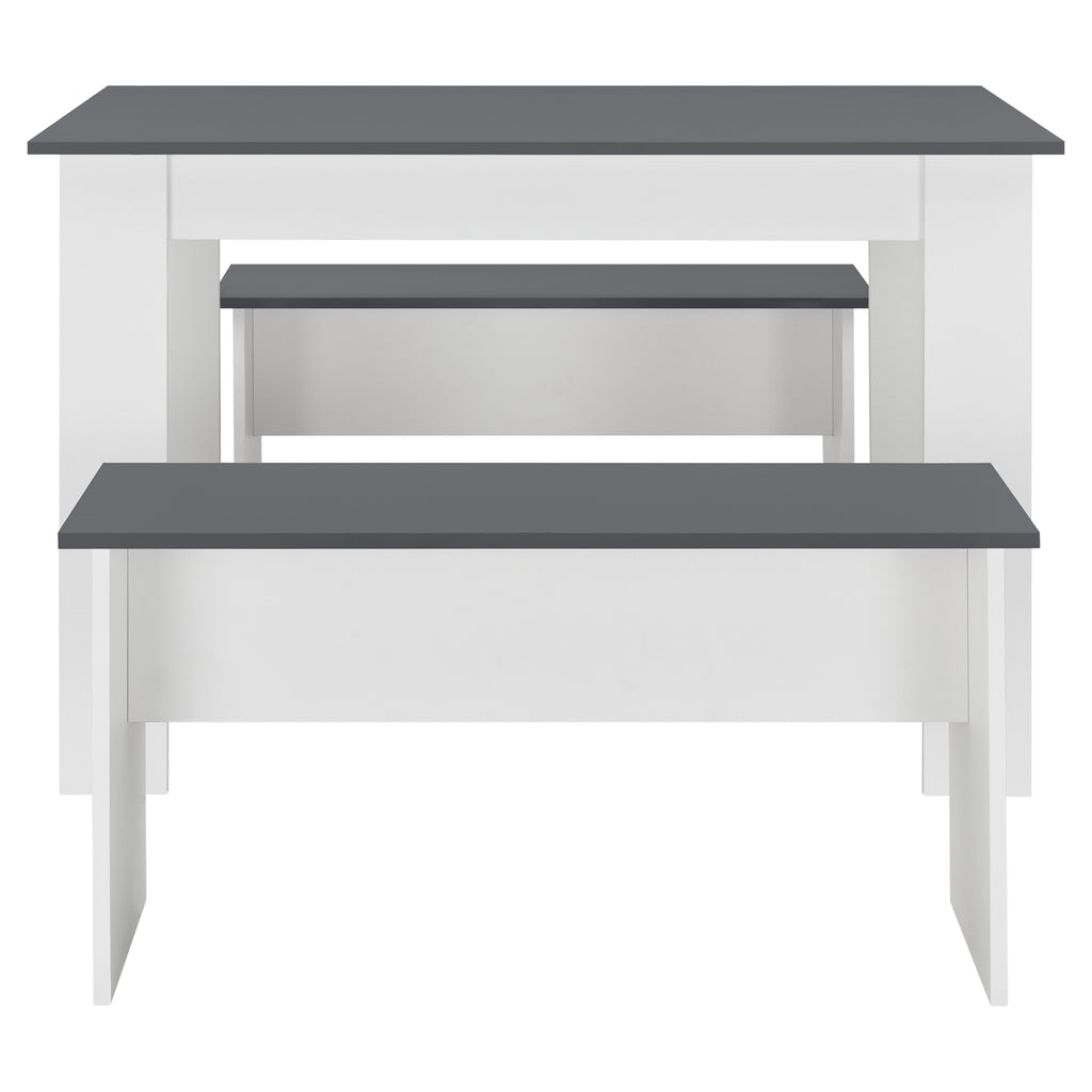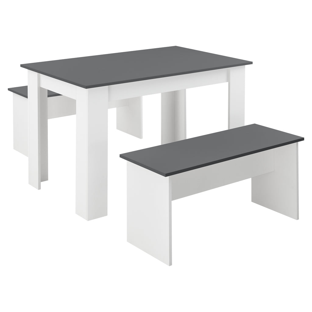 Lot de table et 2 bancs salle à manger pour 4 personnes 110 cm blanc gris 03_0005811
