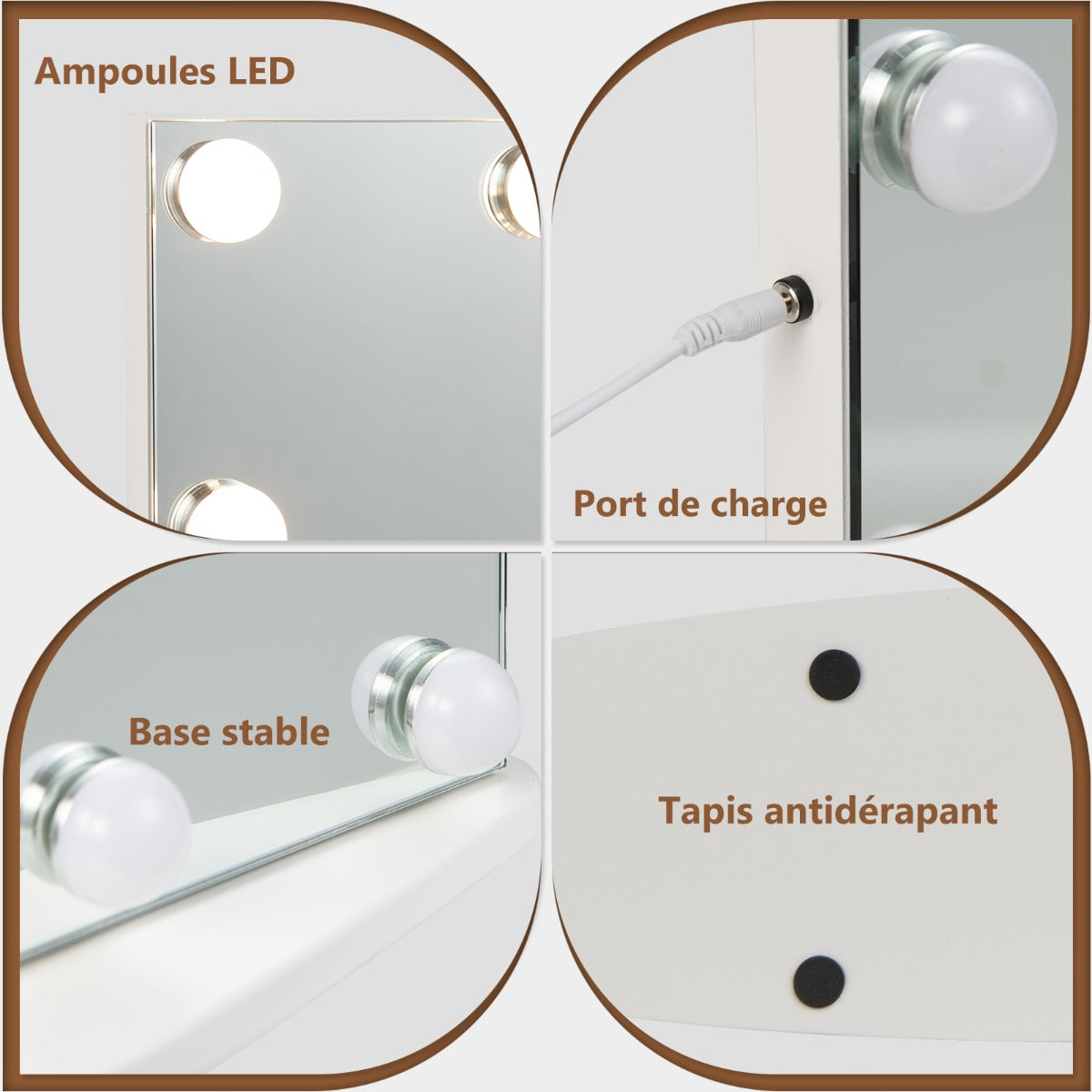 18 ampoules LED lumineuses fournissent suffisamment de lumière pendant le maquillage