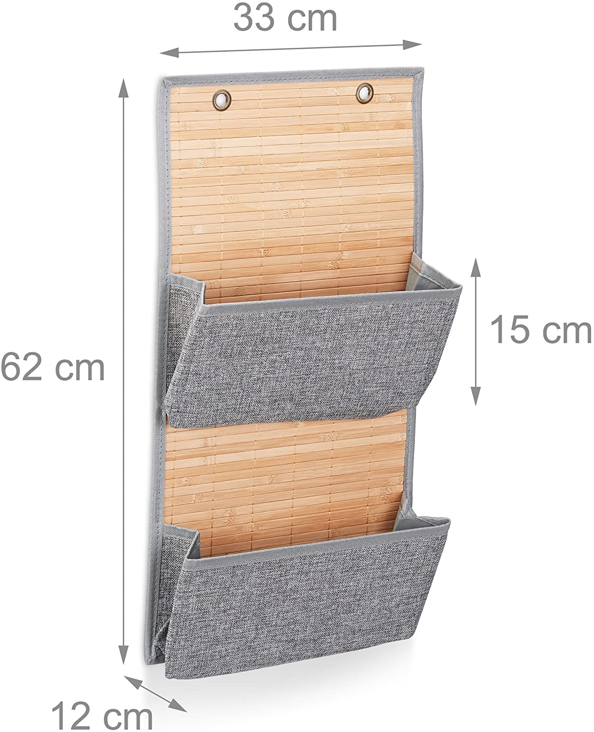 Organisateur mural et porte meuble accessoire salle de bain bambou et gris 13_0001731