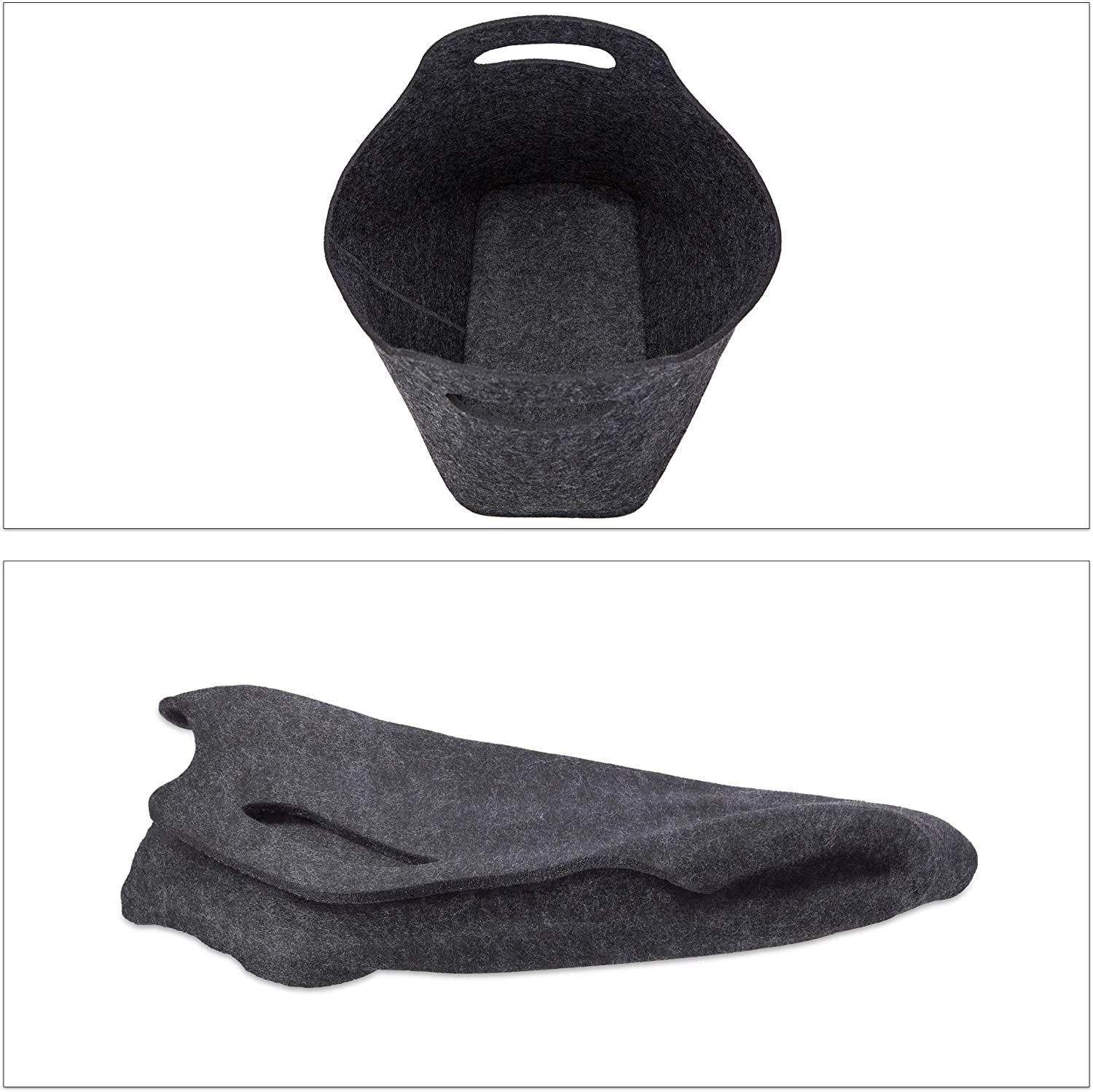 Panier à bûches de bois accessoire cheminée en feutre gris foncé 13_0001897