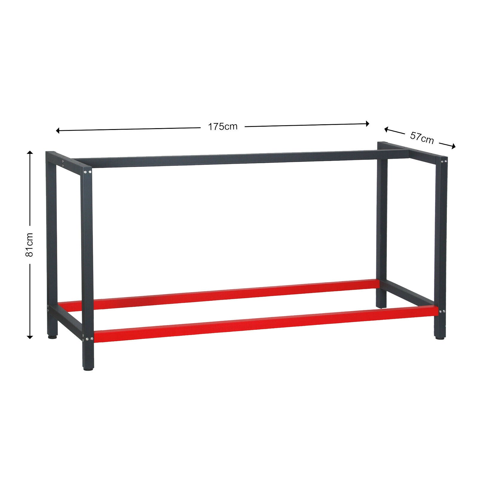 Pied établi 175 cm acier anthracite rouge support bureau emballage atelier 16_0002510