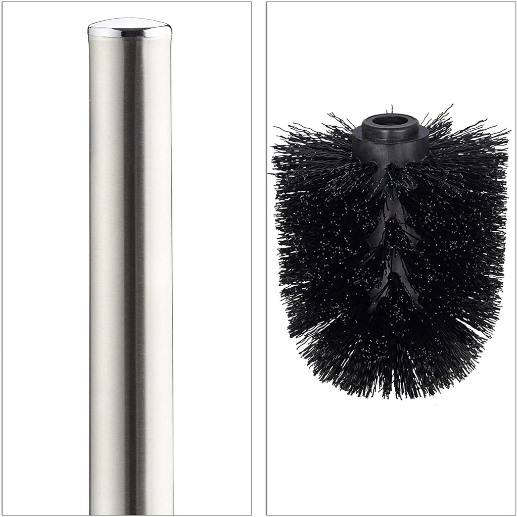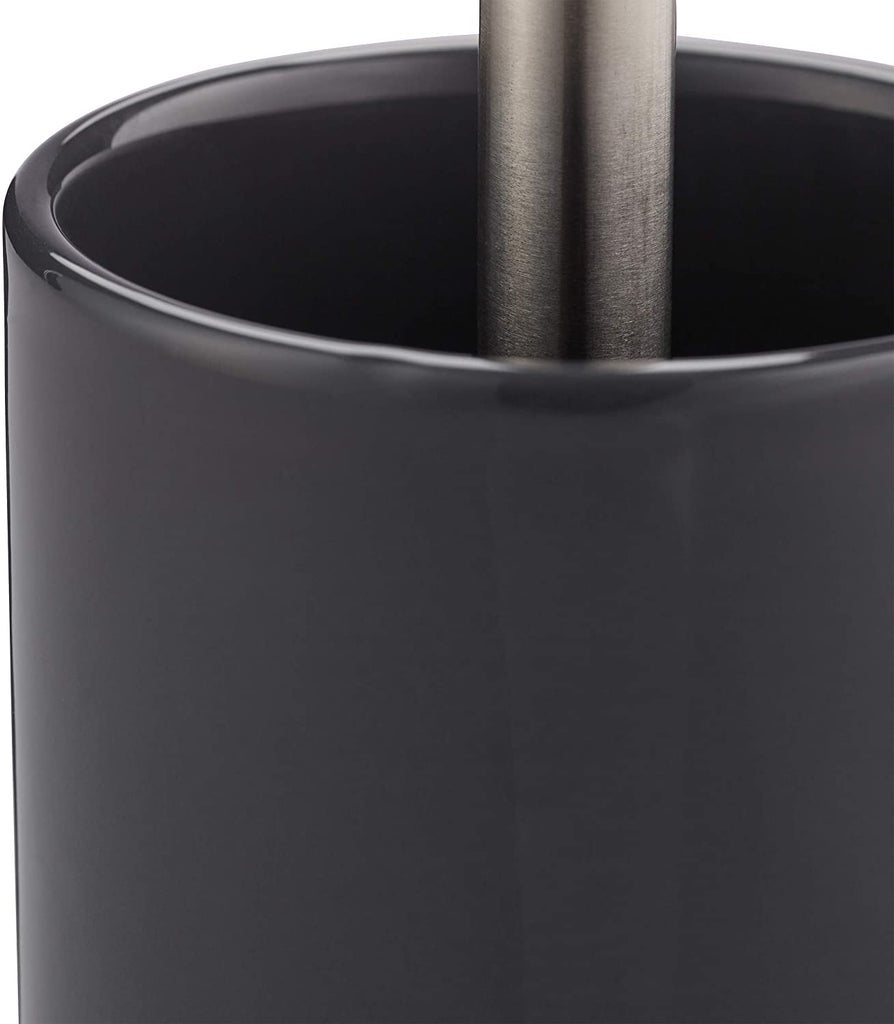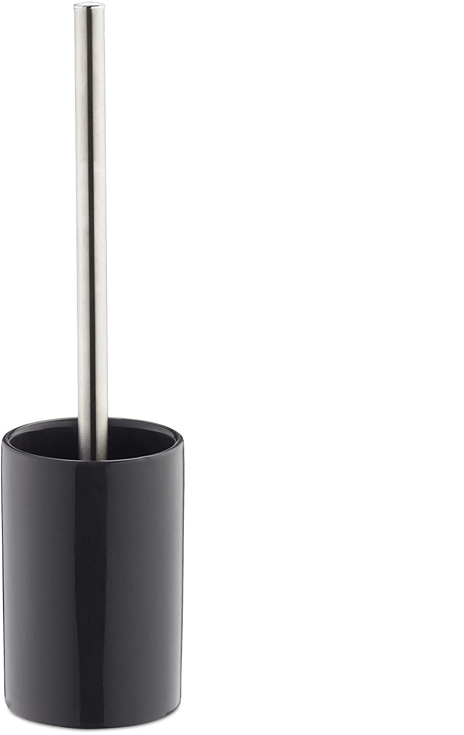Porte brosse WC céramique avec brosse et tête changeable poignée en métal rond 36 cm gris 13_0002144