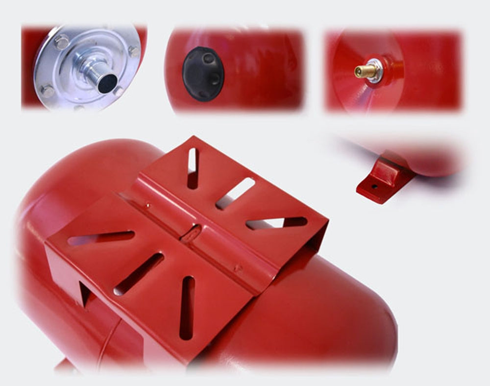 Il est livré en horizontal et a un raccord pour une pompe domestique de 32,89mm (1"). De plus il dispose d'une valve intégrée pour gonfler la membrane.