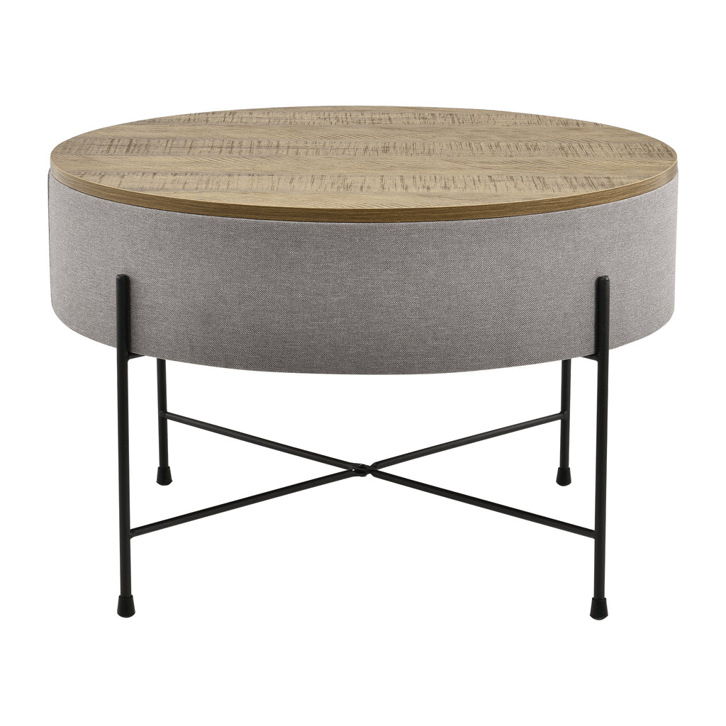Table basse ronde avec plateau amovible panneaux de particules textile métal 40 x 60 cm bois gris noir 03_0004151