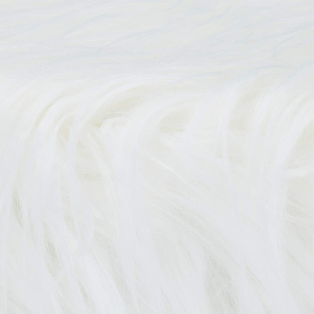 Tabouret fausse fourrure poils pouf 4 pieds bois blanc 13_0002796